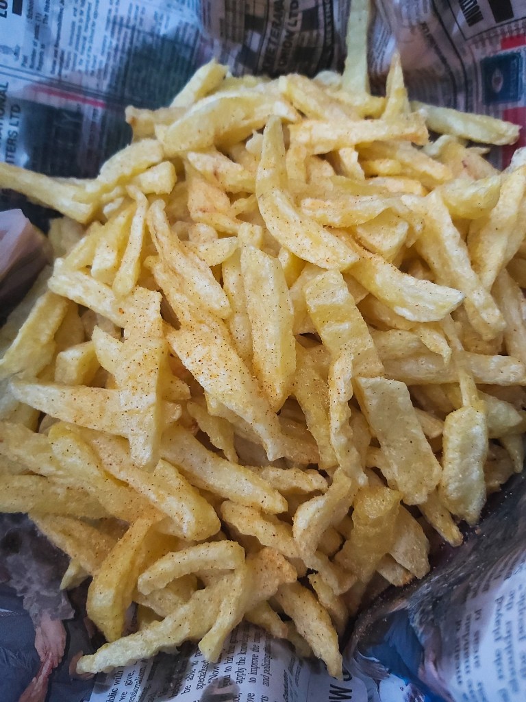 - In a bowl, mix the paprika, garlic powder, salt and a pinch of chilli if you like and sprinkle this over the fries while hot and give them a light coating.