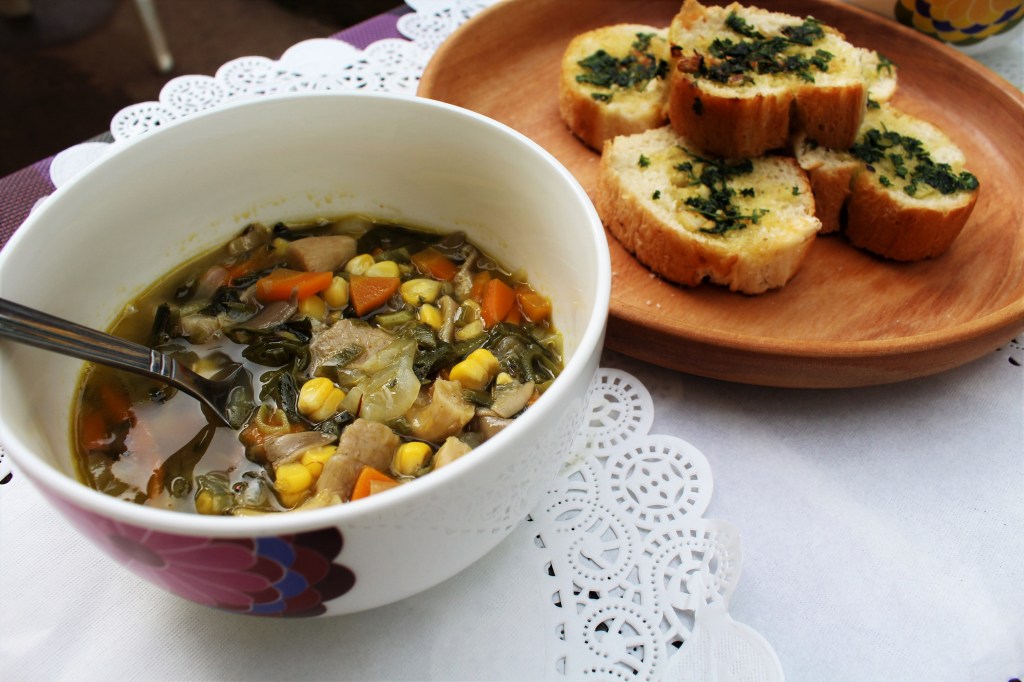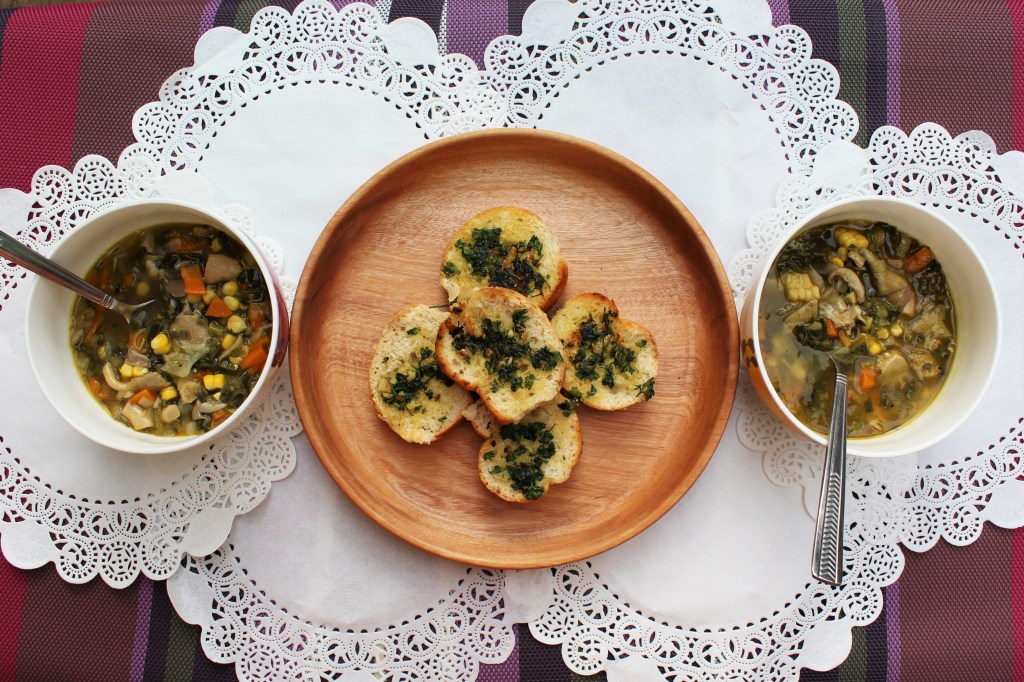 A hearty soup gets me all warm and cozy on the inside and if it has a kick to it the better coz that riot at the back of the throat is pure joy! This was done specifically for a friend that loves garlic bread so it was only natural I made a soup to go along with it.