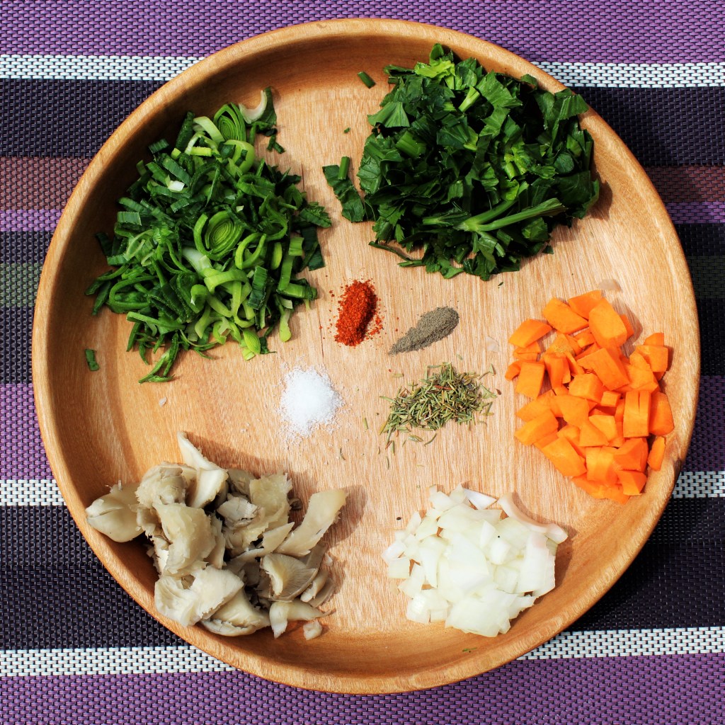- Melt 2 table spoons butter in a pot over medium heat then add 1 cup carrots, 1 cup onions, ½ cup celery and cook till tender but not brown.